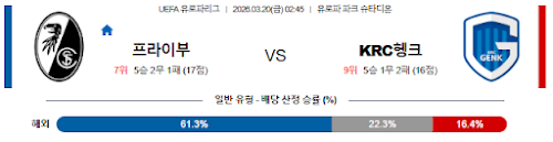 데일리스포츠, Daily Sports, UEFA 분석, 유로파리그 16강, SC 프라이부르크 KRC 헹크, 에게슈타인 복귀, 자카리아 엘 우아디 결장, 유로파-파크 슈타디온, 1차전 결과 1-0, 분데스리가 순위, 벨기에 프로 리그, 오늘 축구 승부예측 추천, 실시간 축구 스코어 확인