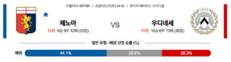 이번 경기는 경기 초반의 탐색전보다, 후반 승부처에서 제노아가 몰아치는 파상공세를 우디네세 수비진이 얼마나 버텨낼 수 있느냐가 핵심입니다.