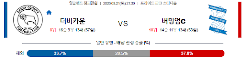 데일리스포츠, Daily Sports, EFL 챔피언십 분석, 더비 카운티, 버밍엄 시티, 백승호, 아계망, 브루스터, 클라크, 스텐스필드, 축구 승부예측 추천, 오늘 해외축구 결과 예측, 실시간 스코어, 하이라이트