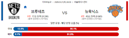 | 승/패 | 뉴욕 닉스 승리 | ⭐⭐⭐⭐⭐ | [강추] 압도적인 전력 차 및 상대 전적 8연승의 절대 우위 |