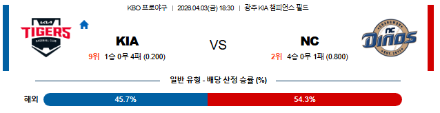 - KIA: 최근 5경기 1승 4패로 부진합니다. 홈 경기 이점이 있지만, 타선이 구창모의 까다로운 공을 공략하지 못한다면 고전할 가능성이 매우 높습니다.