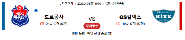 - KOVO: 도로공사 vs GS칼텍스 (언더)