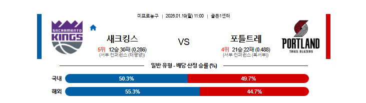 | 승/패 | 새크라멘토 승 | ⭐⭐⭐⭐⭐ | 사보니스 복귀 + 홈 4연승 기세 + 포틀랜드 백투백 |