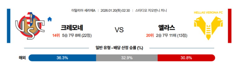 - 상대 전적: 최근 맞대결에서 크레모네세는 베로나의 뒷공간을 공략하며 전술적 우위를 점해왔습니다.