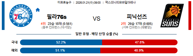 🏀 09:00 NBA 필라델피아 vs 피닉스