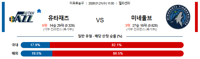 🏀 11:00 NBA 유타 vs 미네소타