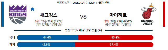 🏀 12:00 NBA 새크라멘토 vs 마이애미