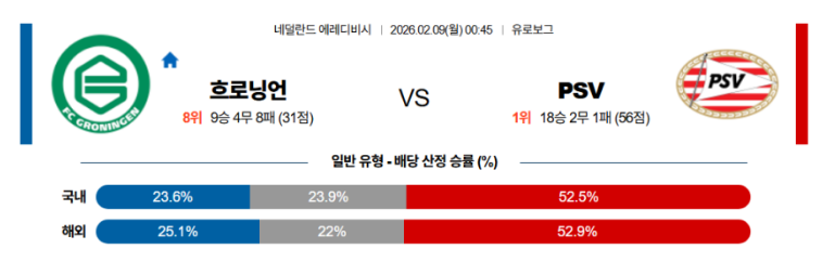 🎯 [에레디비지 팩트체크] 흐로닝언 vs PSV: "승패보다 확실한 득점 공식, 오버를 조준하라"